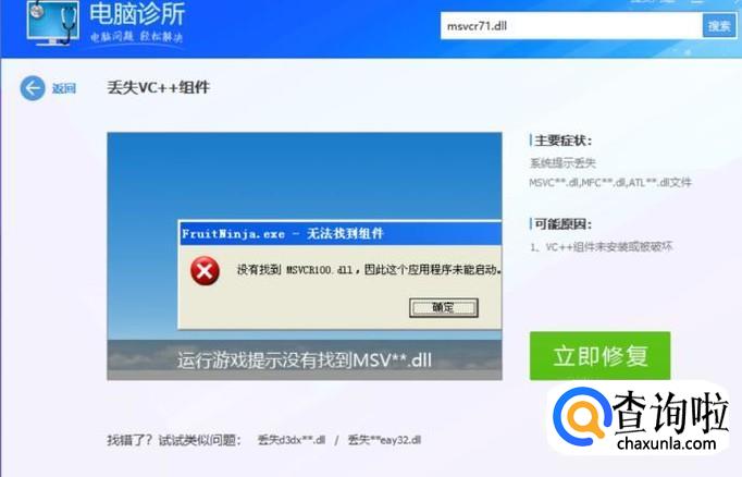 电脑中提示msvcr71.dll丢失,怎么办