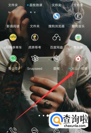 打开手机,找到火山小视频,点击并进入,如图所示。