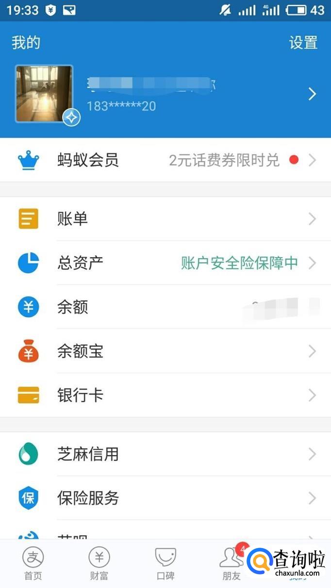 进入我的页面以后可以看到账单按钮,点击账单按钮,进入查看账单。