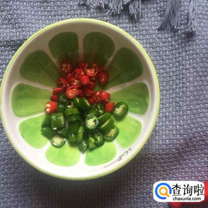 然后把红绿辣椒切成辣椒圈,等到锅中的水分所剩无几了,倒入红绿辣椒圈翻炒一分钟就可以出锅了。