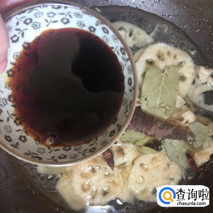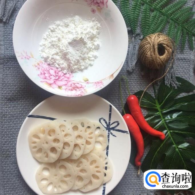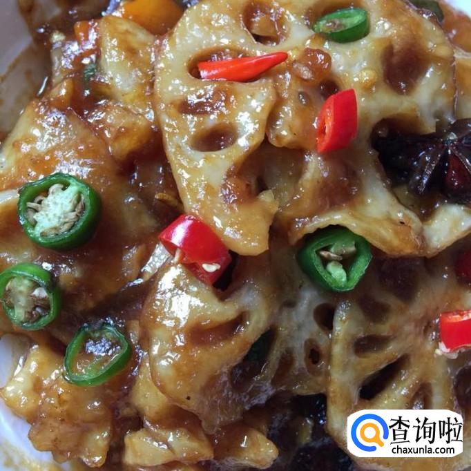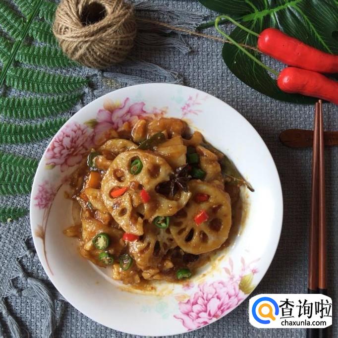 莲藕,玉米淀粉,食用油,桂皮,八角,香叶,香葱,蒜头,黄辣椒,绿辣椒,红辣椒,老酒,酱油,白糖。