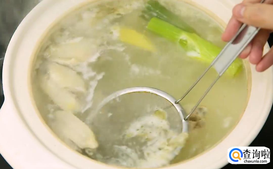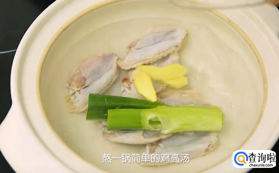 把鸡翅放进锅里,加入大葱和姜片,2大勺料酒,1000ML水,熬一锅简单的鸡高汤。大火煮开后捞去浮沫,转小火煮20分钟,取出葱姜,鸡翅留不留下都可以,这样高汤就完成了。