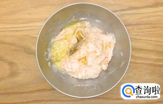 充分搅拌后,加入3大勺淀粉拌均,增加粘性。