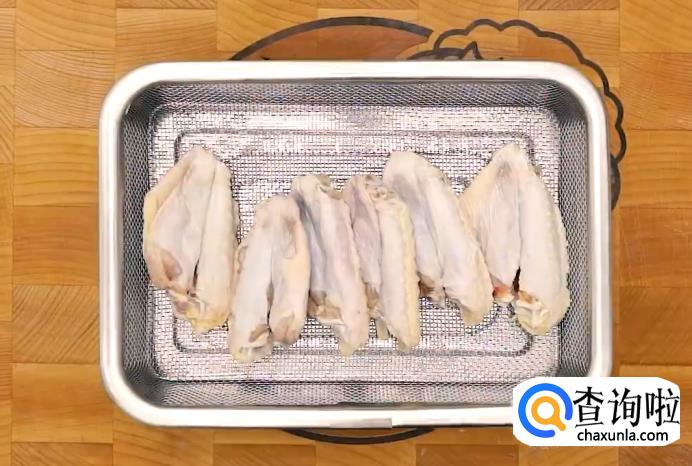 把6个鸡翅洗干净,并用剪刀将骨头的连接处剪开,这样更容易熟透。