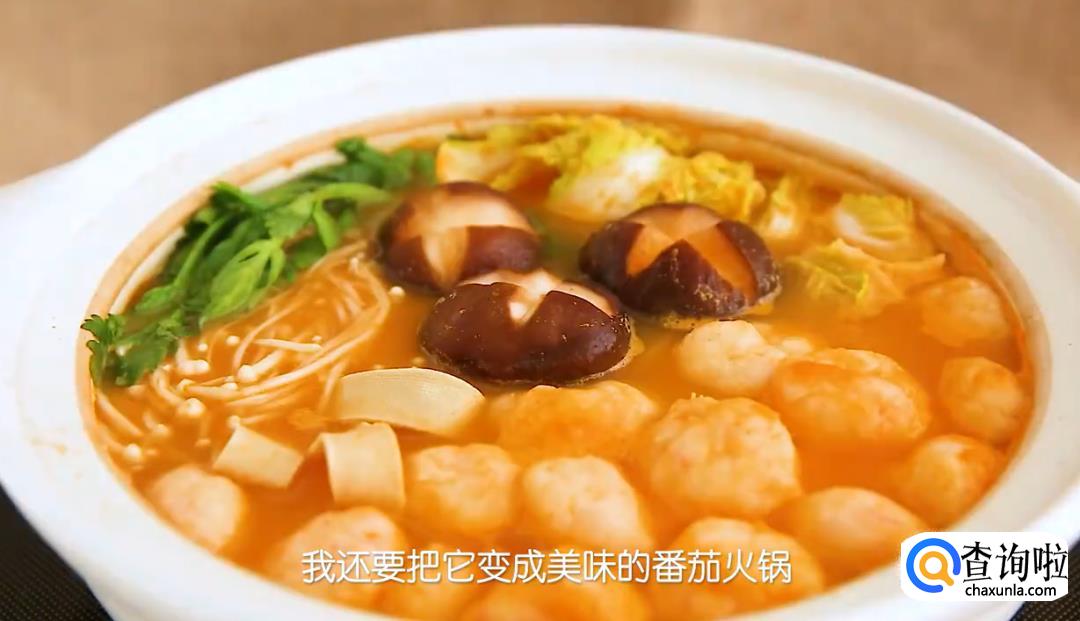 除此之外,还可以加点配菜,把它变成美味的番茄火锅。
