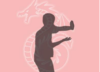 抢攻性招数,对单人,降龙掌法中最省力的一招。右手自胸前由下而上推掌,向敌人心口或面门打去,左手同时向里钩拿。右推左钩,是一种左右夹击的攻招,关键是让人无处可避,且顺势出掌力道倍增。