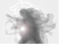 正面攻击招数。先聚气于胸,以气化掌。一掌前探,掌风略敌面门,同时用气道慑敌,使之不能兼顾,此掌为虚。另一掌于前一掌同时击出,从前一掌下穿过,直击对手胸腹,此掌为实。此招关键在于虚实配合,快速准确。