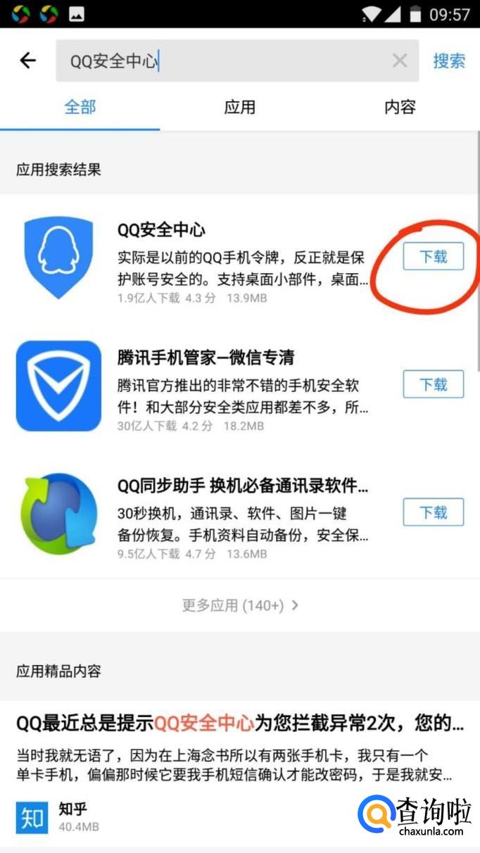 首先,打开自己手机自带的应用商店,下载并安装“QQ安全中心”