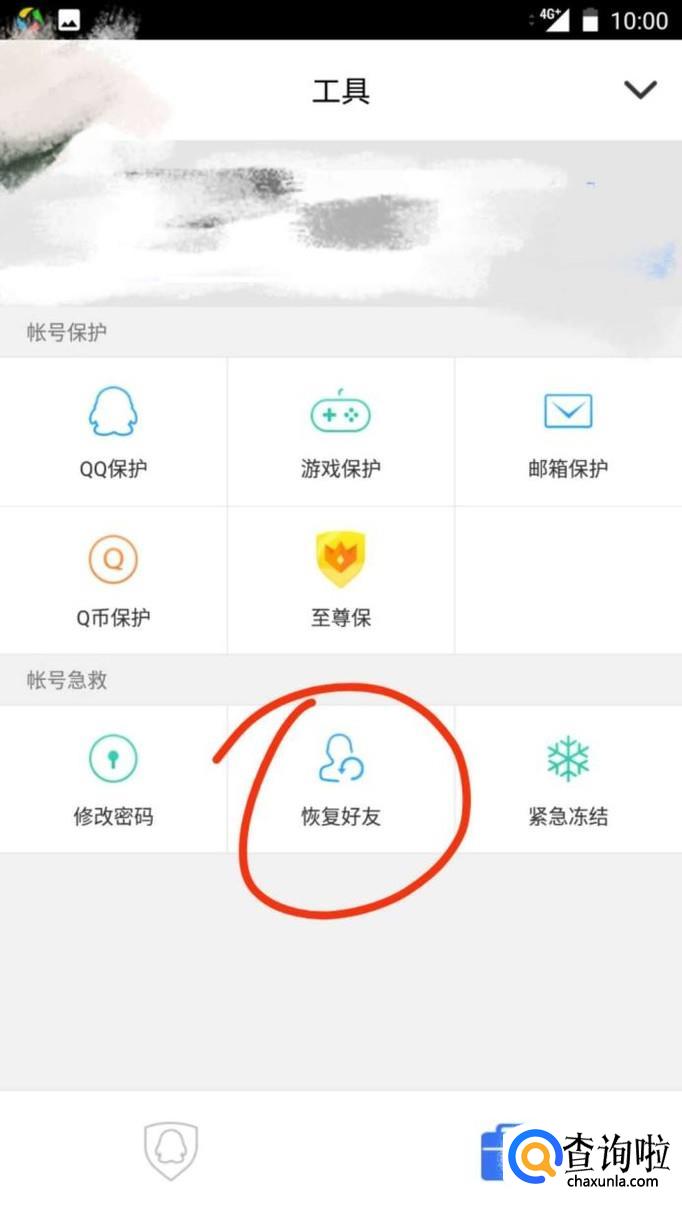 在成功登陆后,点击右下角的工具箱,工具箱界面会有“恢复好友”