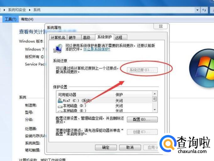 在弹出的“系统属性”窗口中,切换到“系统保护”选项卡,如下图所示:
