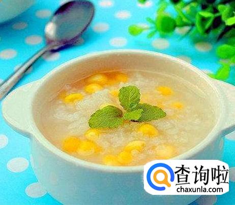 玉米粒白米粥:把玉米粒掰下来,或者用刀削下来,与大米一起熬煮,适当的加一点点盐,非常好喝。