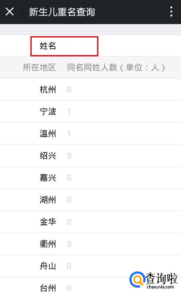 再点击查询后,过一会系统就会显示你查询的姓名,在全省各地的重名情况。
