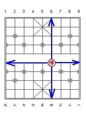 帅和将是棋中的首脑,是双方竭力争夺的目标。它只能在“九宫”之内活动,可上可下,可左可右,每次走动只能按竖线或横线走动一格。帅与将不能在同一直线上直接对面,否则走方判负。