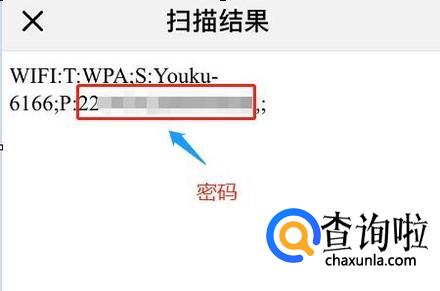 扫描识别完成以后,扫描的这部手机上即可弹出一个页面,上面有目前家里在用的WiFi名称以及密码(P后面的是密码),如图所示...