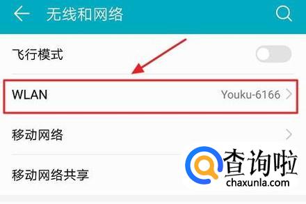 点击此项即可看到目前我们连接的无线网名称了,点击名称以后在WLAN页面可以看到附近可用的所有的无线网列表;