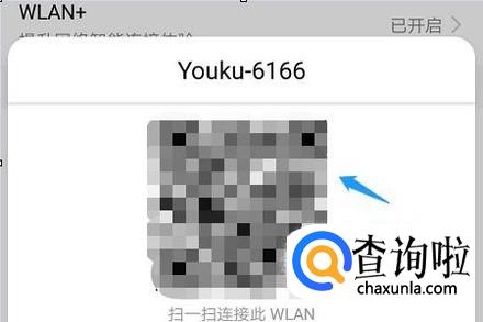 我们只点击目前已经建立连接的那个无线网,然后会弹出一个窗口,窗口的最上面有一个二维码,如下图所示...