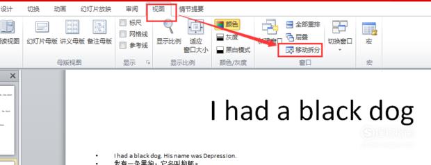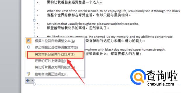 选择“将幻灯片拆分到两个幻灯片”。