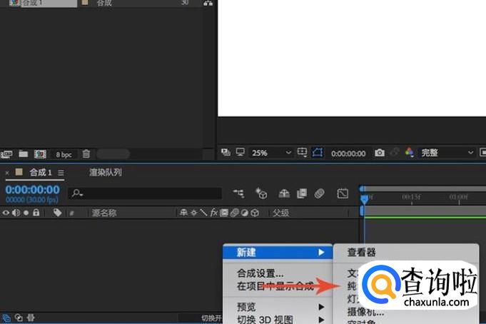 合成创建完成之后,右键点击左下角图层栏,然后新建一个纯色图层。