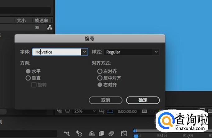 在编号弹框中,字体随意选择,方向水平,对齐方式为右对齐,样式选择regular正常。