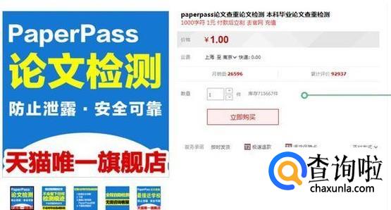 在某宝买Paperpass。它的数据都来自网络,价格公道,可以用来初期的查询。当做初稿后的修改。但能自己来写的要尽量自己写,不仅重复率又保证,答辩的时候也会顺利一些。