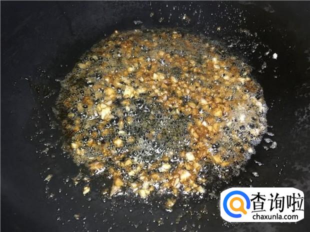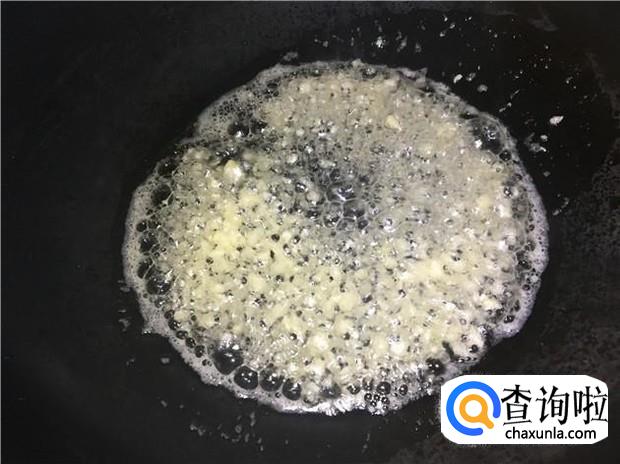 蒜头用刀背拍扁,剁成蒜蓉。