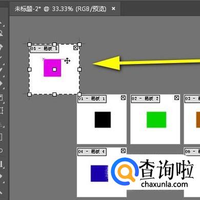 鼠标再点住紫色矩形这个画板,移好位置。那么,用这种方法,我们可以任意修改画板顺序。