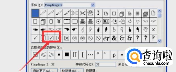 将字体改为拉丁文本或Wingdings 2,在下面就出现方框打钩的符号,点击插入。