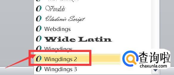 在字体下拉菜单中我们选择“Wingding2”菜单项。