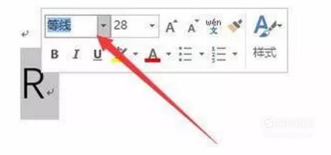 然后选中R字母,在弹出的菜单中点击字体下拉菜单。