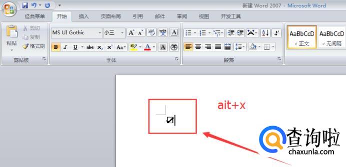 同时按住ait+x键,我们看到word光标出现方框打钩符号