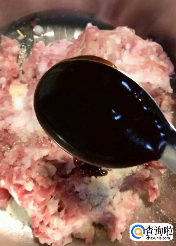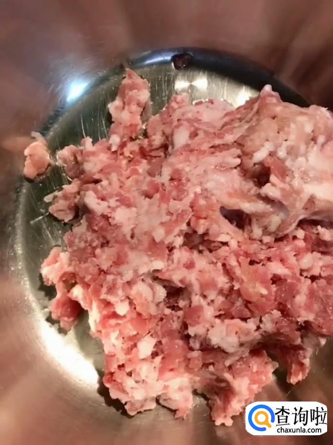 首先我们将一斤猪肉馅放入一个盆中