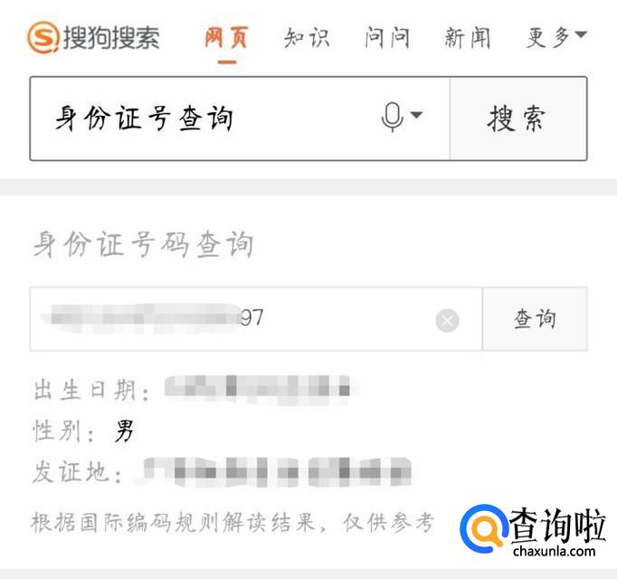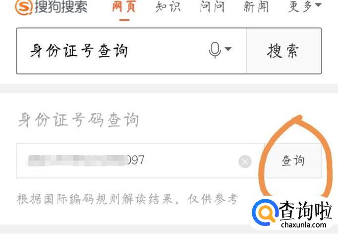输入“身份证号码查询”,点击搜索,将出现身份证号码查询框