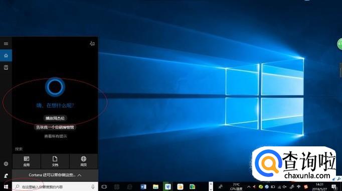 启动Windows 10操作系统,如图所示。点击任务栏搜索框,开始使用Cortana(小娜)智能语音助理。
