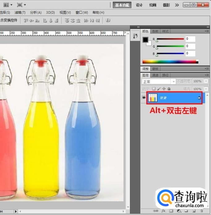 按住Alt键,鼠标左键双击右侧图层,解锁背景;