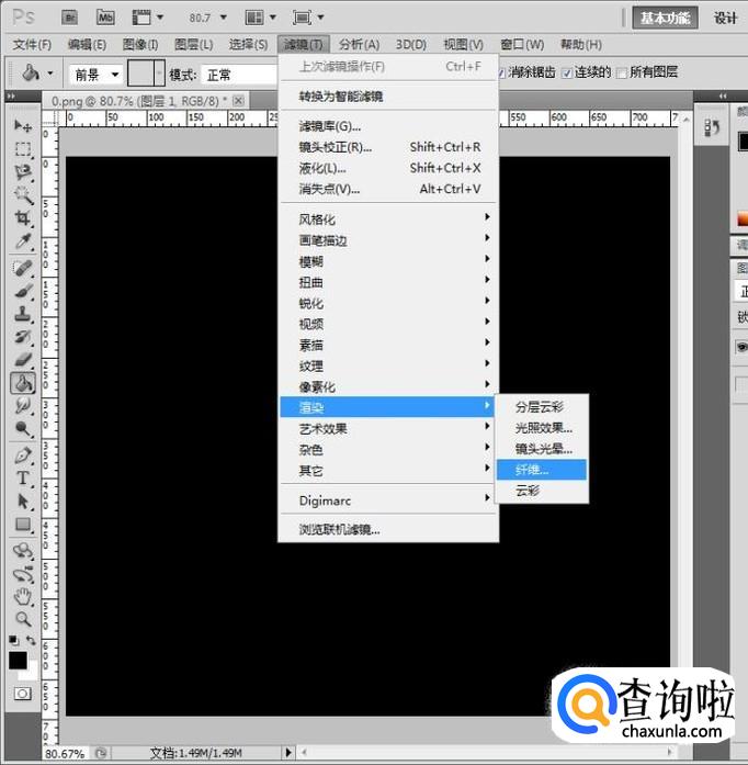打开滤镜菜单,找到渲染->纤维,使用默认参数,确认即可;