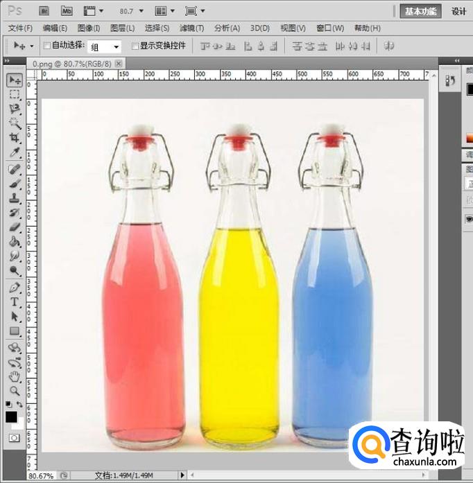 拍摄有冷凝水珠的饮料瓶需要一定的条件,而拍摄没有水珠的相对容易些,但还是要水珠效果,怎么办,下面教大家一个简单的处理办法;