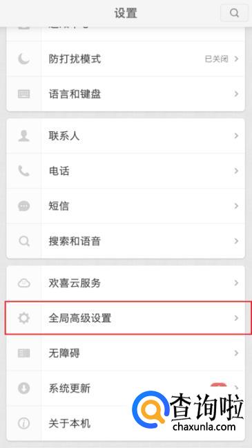 在设置中找到全局高级设置选项,点击此选项