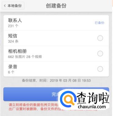 选择要备份的文件类型,并在后面打钩,点击完成