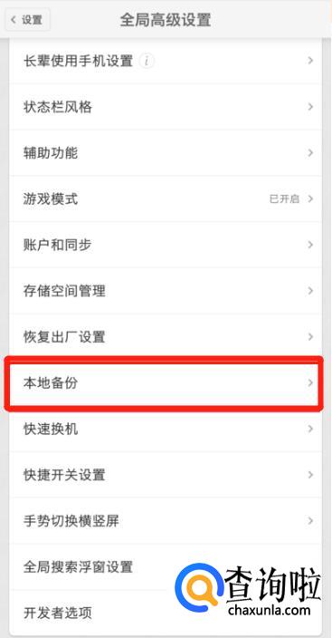 点击本地备份选项并点击此选项