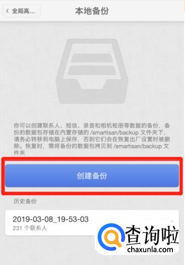 点击 创建备份 选项