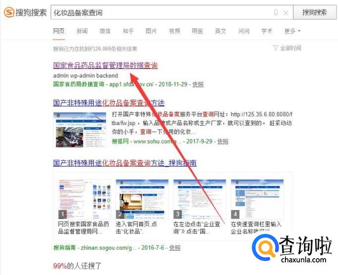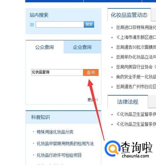 进入之后,搜索“化妆品备案查询”,点击并进入,如图所示。