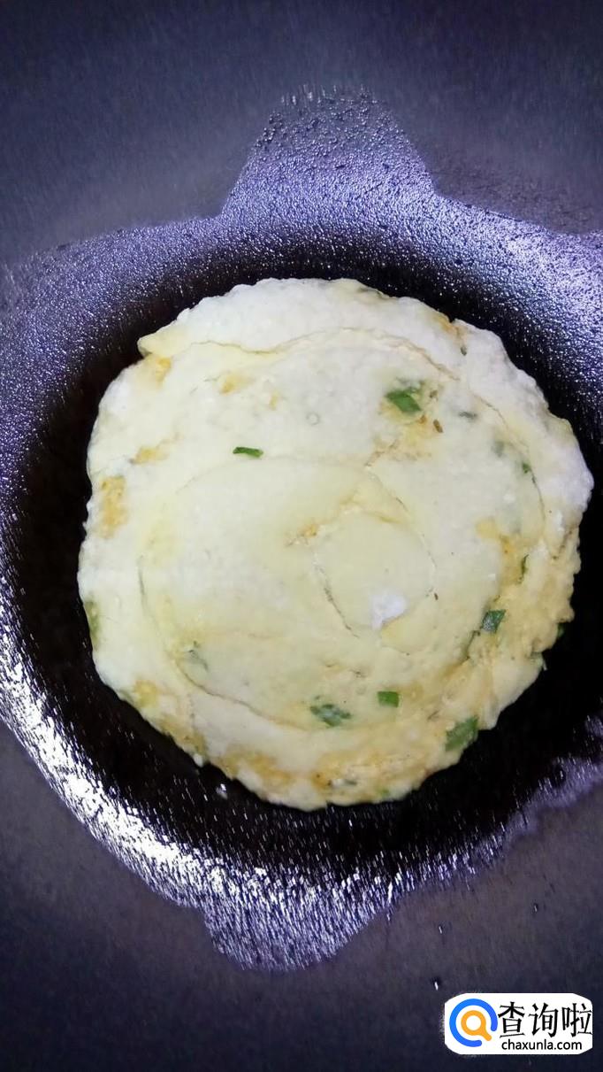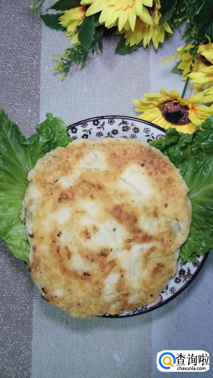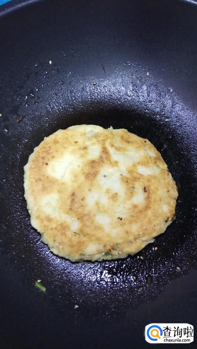 准备平底锅,放入适量油,油温五成热后,将做好的饼放入锅中,煎至两面金黄。