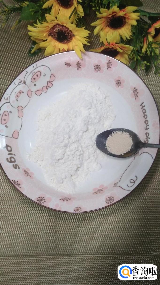 将适量酵母粉放入面粉中,再加入少许温开水,用手和成光滑的面团。
