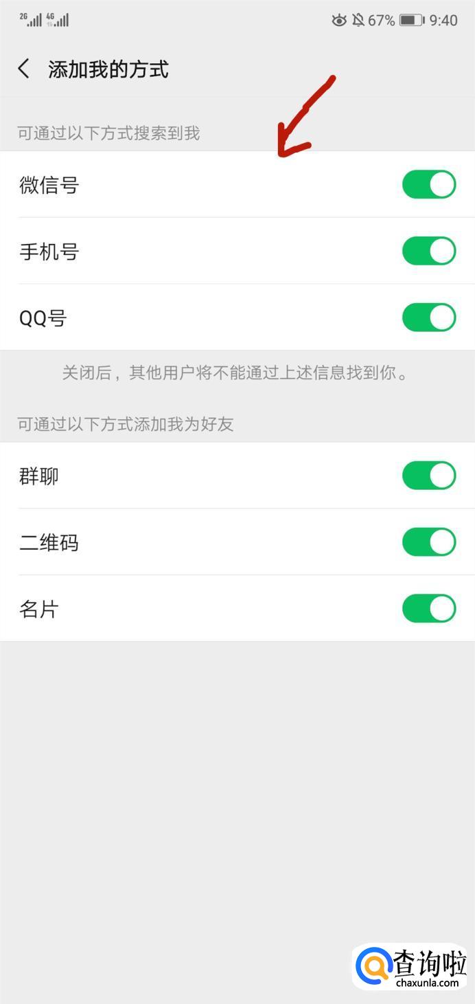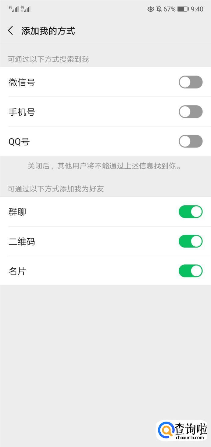 将通过微信号,手机号,QQ号全部关闭。如图所示