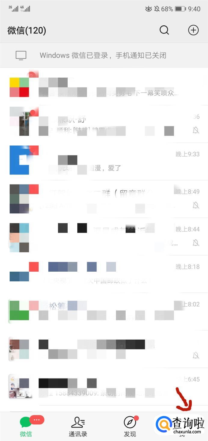 进入微信主页后,选择右下角的“我的”。
