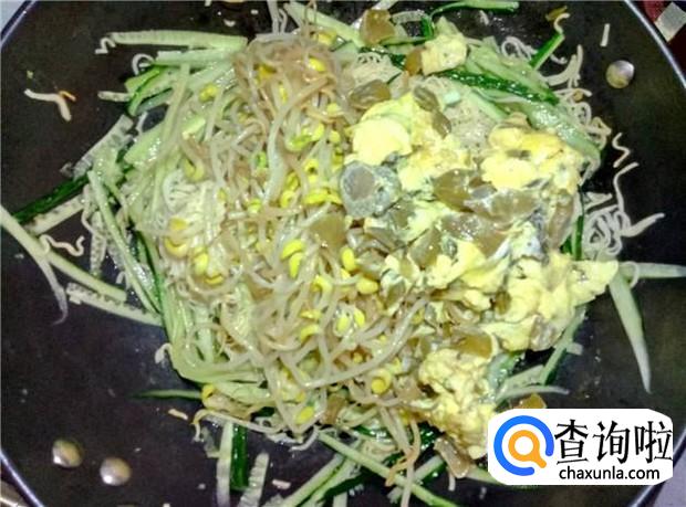 然后把豆芽倒进去,加入适量的盐,搅拌均匀即可。不用开火的哦。