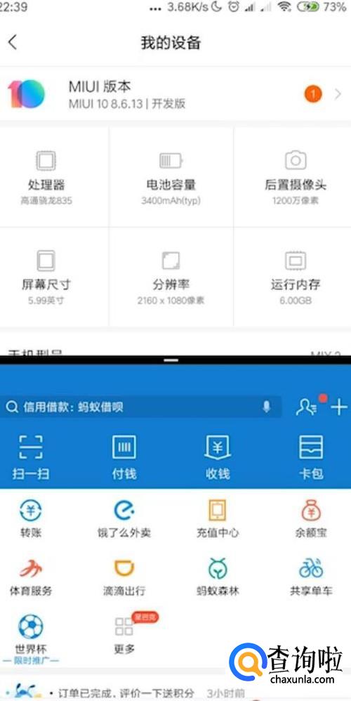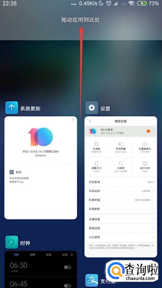 小米手机直接从屏幕下方往上滑动后进入该页面,将打开的想要分屏的软件拖动到顶部。