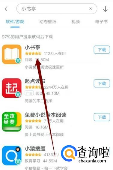 进入之后,在图示位置搜索“小书亭”,进入下一页面,如图所示。