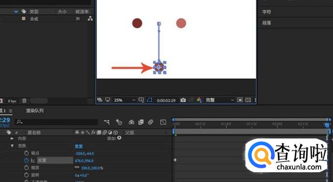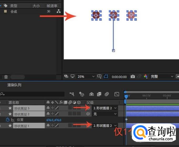 子父级关系创建完成之后按空格键预览,我们就会发现子级的两个形状就做跟父级相同的运动了,这就是子父级的好处。