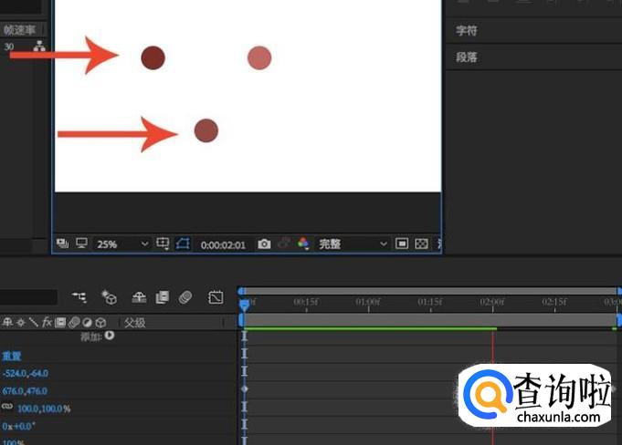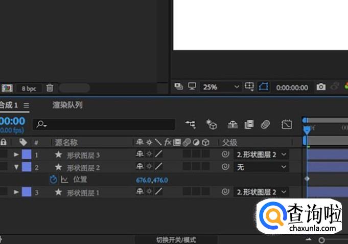 还有一点就是,在添加了子父级关系会后,子级的图层是没有显示关键帧的,在面板中我们只能够看到父级的关键帧。